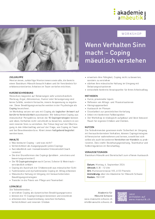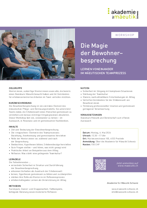 auf der Internetseite der Akademie für Mäeutik Schweiz – erlebensorientiere Pflege und Betreuung.